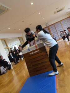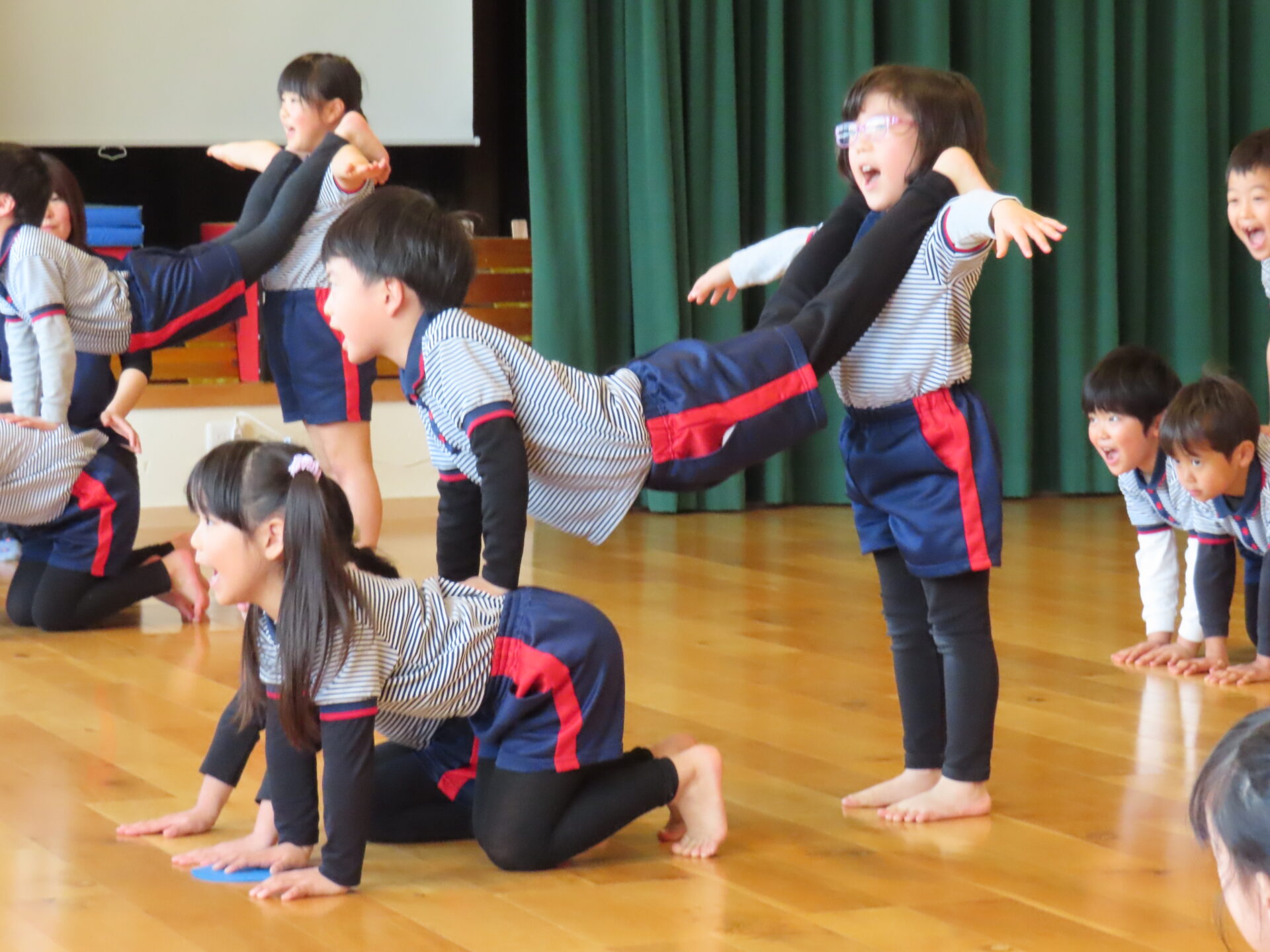 体育教室(組体操・跳び箱)では、お友だちと協力しながら組体操や高い跳び箱にも挑戦しようとする姿があり成長を感じました。