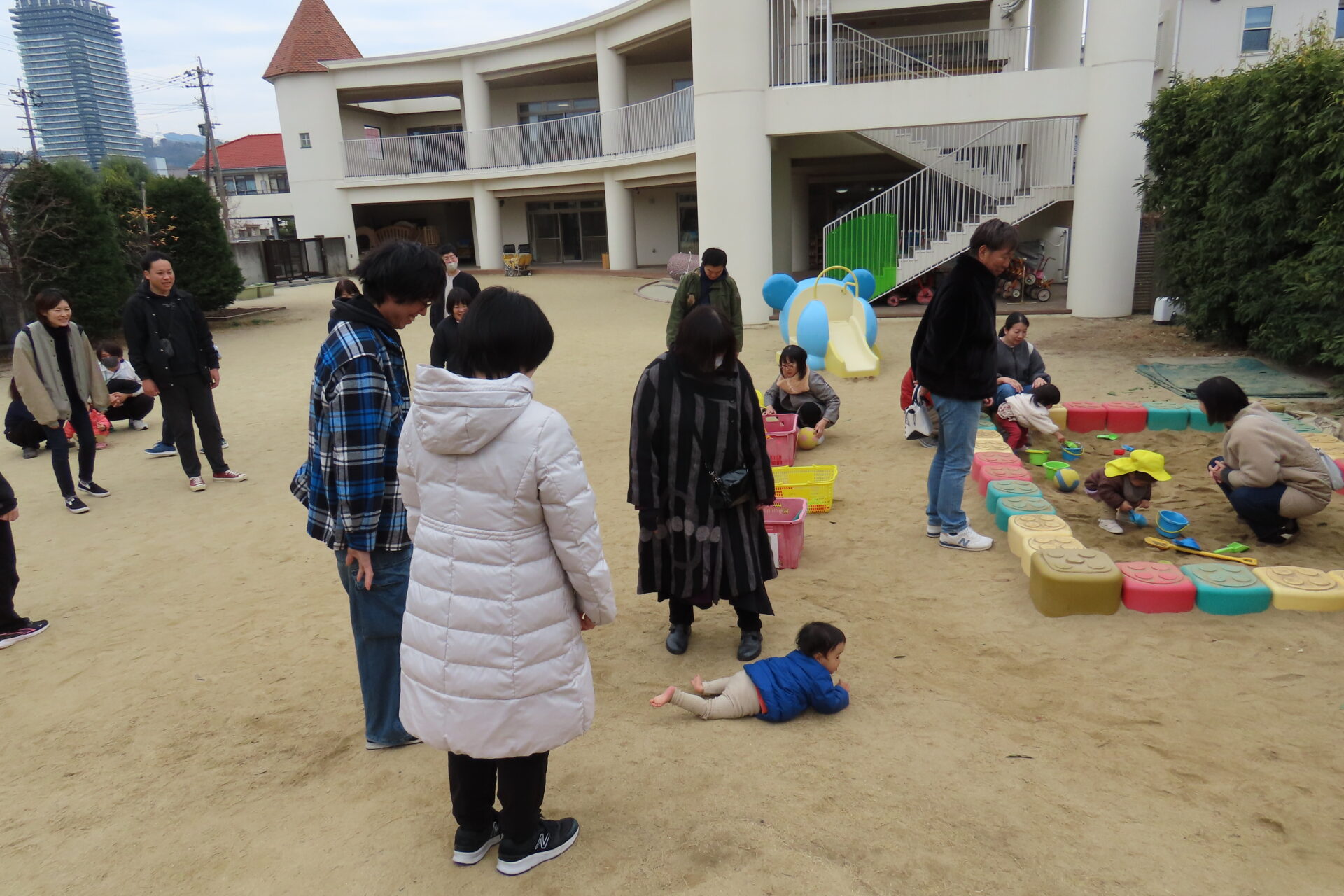 2月6日(金)に行われた保育参観では、いつもの朝のお集まりの様子を見ていただいたり、保護者の方と一緒に戸外遊びを楽しんだりしました。少し緊張する様子が見られたりもしましたが、ほぼいつも通りの姿を見せることが出来たと思います。4月の入園当初と比べ、お返事が出来るようになったり、絵本を座って見たり、思いっきり戸外で遊ぶ姿に成長を感じることが出来ました。楽しい時間を保護者の方と過ごせて、こどもたちも嬉しかったと思います。たくさんのご参加ありがとうございました。